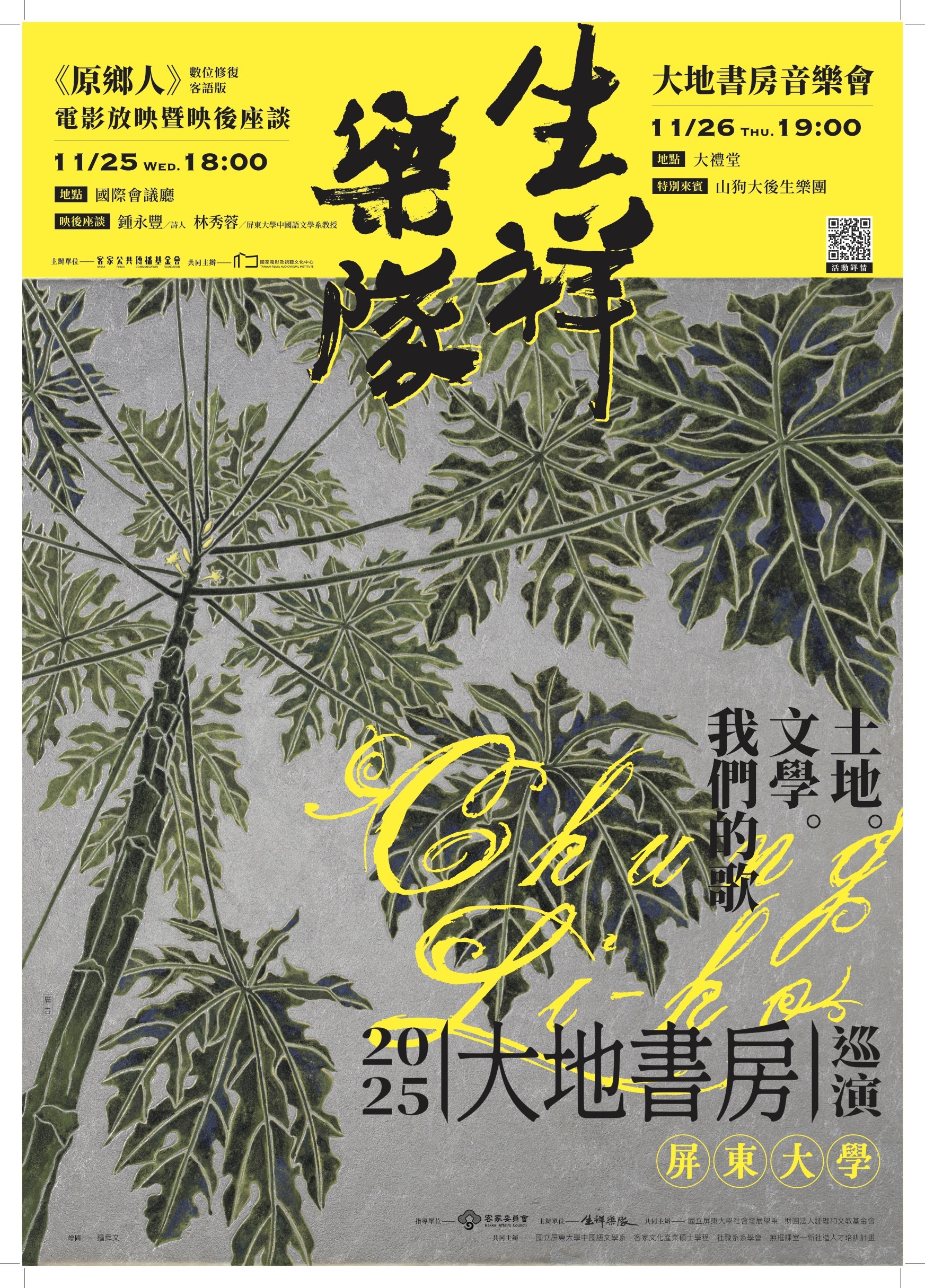 「大地書房」巡演系列,將於11月25、26日抵達屏東大學。